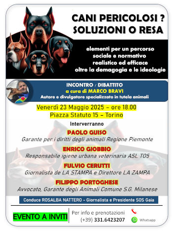 Questo è il titolo di un interessante e riuscitissimo convegno organizzato dalla Dr.ssa Rosalba Nattero, giornalista, da sempre “portavoce” e paladina degli animali non umani. Ideatrice e conduttrice di una fortunata trasmissione televisiva settimanale, “SOS Gaia, il pianeta vivo”, e molto sensibile alle questioni riconducibili agli animali, nessuno escluso. Il titolo del convegno - che si è tenuto a maggio scorso a Torino - era “Cani pericolosi, soluzioni o resa”. Non vi è bisogno alcuno di sottolineare come il tema sia di enorme importanza oltre che di grande attualità. Sappiamo tutti che in Parlamento, anzi in una delle commissioni, è giunto un progetto di legge che a breve, una volta calendarizzato, inizierà il suo percorso. Mi guardo bene da alludere a tale progetto, limitandomi a ripercorrere - a beneficio di chi avrà interesse a leggermi - il mio intervento. Parto dal significato etimologico delle parole di questo titolo. Pericoloso significa controindicato, sconsigliabile; che ha in sé la possibilità di determinare o di costituire un pericolo, che può procurare o provocare danni fisici o d’altra natura, direttamente o indirettamente. E un cane è dunque sicuramente o potenzialmente pericoloso, qualunque sia l’accezione. L’interrogativo propone una soluzione oppure una resa. Soluzione, dal diritto romano, significa liberazione da un’obbligazione, da un debito, quello di dover pagare con la vita di altri cani o di umani la pericolosità di alcuni altri cani. Resa significa arrendersi, soccombere di fronte a quella che è una situazione non oltremodo sostenibile. Ebbene, l’obiettivo non può che essere quello di limitare il danno: occorre un’azione di prevenzione organica e non solo emergenziale o di facciata. Non si tratta infatti di tragici incidenti ma di tragedie annunciate. Nonostante molti si ostinino a promuovere rimedi salvifici. Siamo di fronte ad un fenomeno, quello delle aggressioni da parte dei cani, dotato di leggi proprie che siamo ben lontano da aver compreso interamente in ogni aspetto. Chiediamoci se quando un cane uccide provocando la morte della vittima siamo di fronte a qualcosa di voluto oppure di accidentale e inevitabilmente conseguente.
